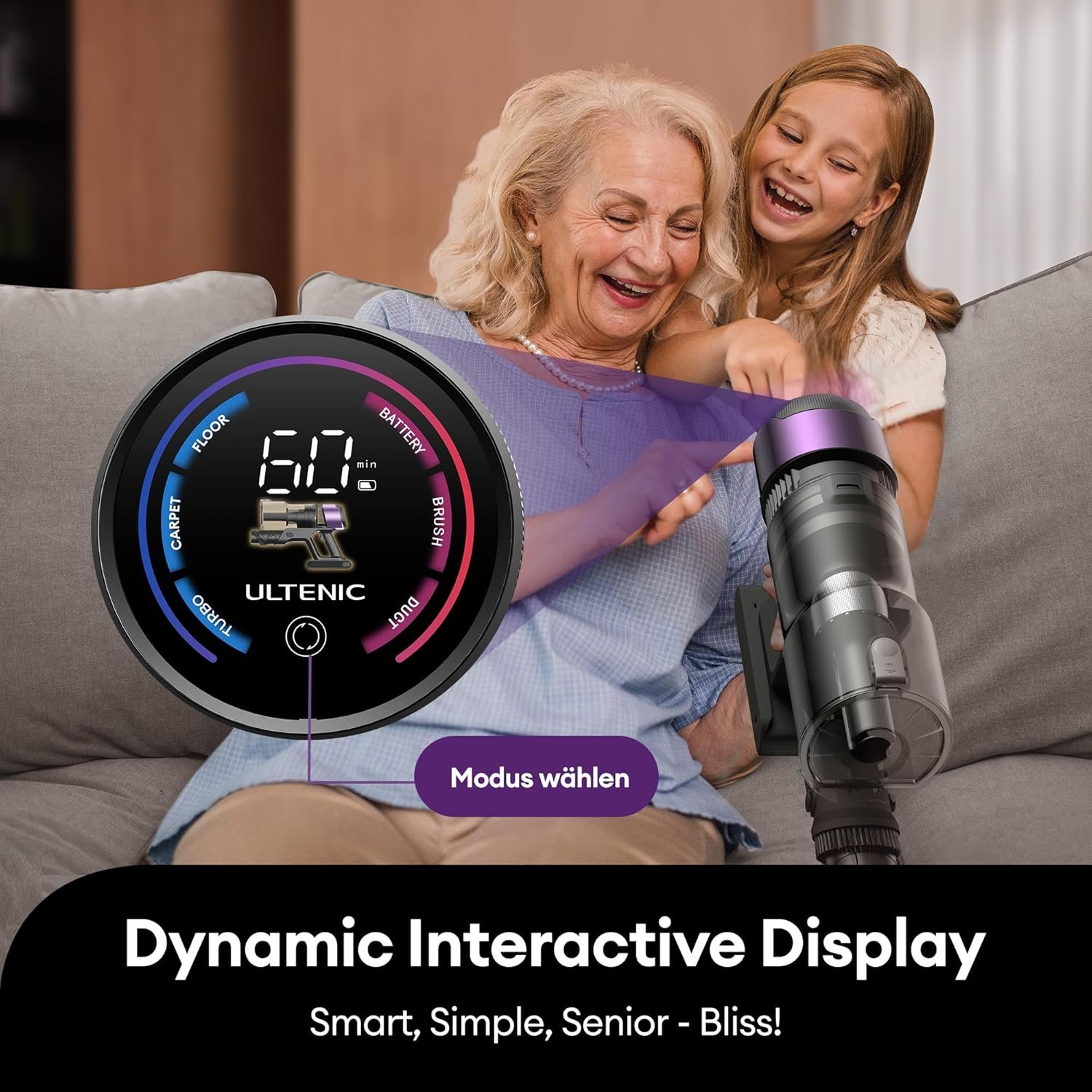 Ultenic U20 Akku-Staubsauger: 55.000 Pa, 600W, 60 Min. Akku, flexibles Knickrohr, Freisteh-Design & GreenEye-Laser