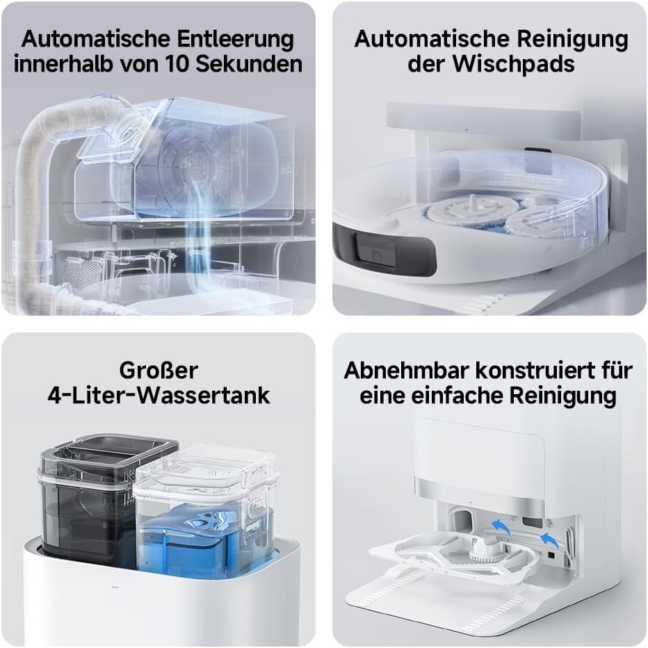 Vergessen Sie das tägliche Entleeren und Reinigen. Die multifunktionale Basisstation ist ein echtes Kraftpaket: